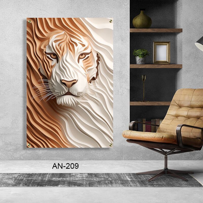 תמונת זכוכית ייחודית למשרד המציגה פני אריה בסגנון תבליט תלת-ממדי בגוונים עדינים של לבן, בז וחום. ההדפסה על זכוכית מדגישה את הפרטים המורכבים של הפנים, ומעניקה עומק ותחושת ריאליזם לתמונה. תמונות זכוכית אלו מתאימות להוספת אלמנט עיצובי מרשים ואלגנטי לחלל העבודה, ומאפשרות להבליט את האופי החזק והמרשים של האריה באמצעות קומפוזיציה אנכית (portrait). תמונה על זכוכית זו משלבת איכות וחדשנות, ומוסיפה נופך של יוקרה וייחודיות לכל משרד. תמונת זכוכית זו היא בחירה מושלמת למי שמחפש לשדר מקצועיות וסטייל עם נגיעה טבעית ואלגנטית.