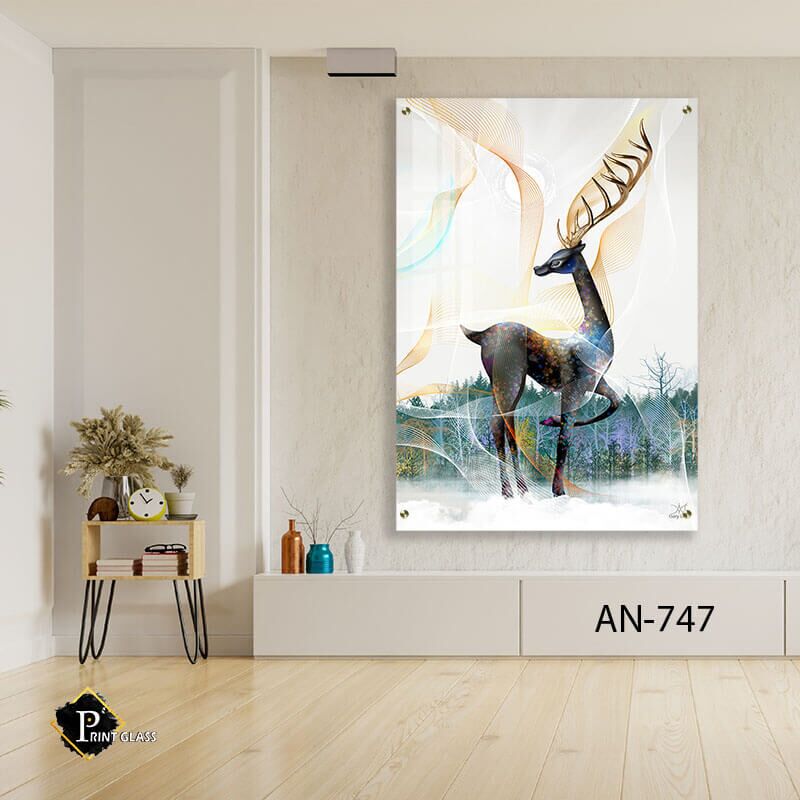 תמונת זכוכית מרהיבה המציגה אייל אצילי עם קרניים זהובות, המשלב יער ערפילי בגופו עם קווים צבעוניים על רקע לבן נקי. ההדפסה על זכוכית יוצרת מראה מודרני ואלגנטי, המדגיש את הפרטים העדינים והצבעים החזקים של האייל והיער. תמונות זכוכית אלו מוסיפות עומק ותחושת טבע ייחודית לכל חלל, והן אידיאליות כתמונה על זכוכית לסלון, המשלבת אמנות וטבע בהרמוניה מושלמת.