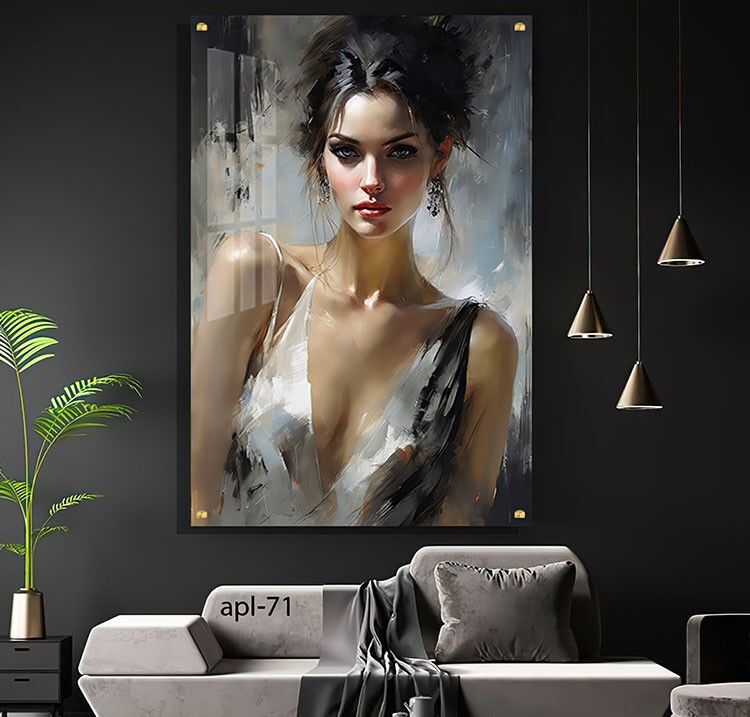 תמונת זכוכית מרהיבה המציגה פורטרט אמנותי של אישה עם שיער כהה אסוף, הלבושה בשמלה לבנה-שחורה, המונחת על רקע אפור מוברש. ההדפסה על זכוכית מדגישה את הקונטרסט בין הצבעים ומעניקה עומק ותחושת אלגנטיות לתמונה. תמונות זכוכית אלו מתאימות במיוחד לעיצוב סלון, ומוסיפות נופך של יוקרה וייחודיות לכל חלל. תמונה על זכוכית זו משלבת סגנון מודרני עם נגיעות אמנותיות, ומאפשרת להנות מיצירת אמנות איכותית ועמידה לאורך זמן. תמונת זכוכית זו מהווה בחירה מושלמת למי שמחפש להוסיף טאץ’ עדין ואלגנטי לעיצוב הבית עם תמונות זכוכית לסלון באיכות גבוהה.